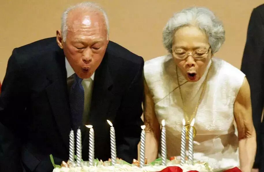 2003年9月16日,李光耀与夫人同吹蜡烛,庆祝自己的80岁生日